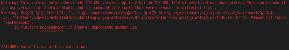 flutter run을 바로 실행하게 될 경우 위와 같은 오류를 나타내는데