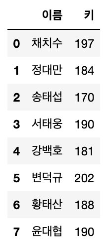 df[['이름','키']] #값이 두개일때 대괄호로 리스트를 한번 더 감싸줌