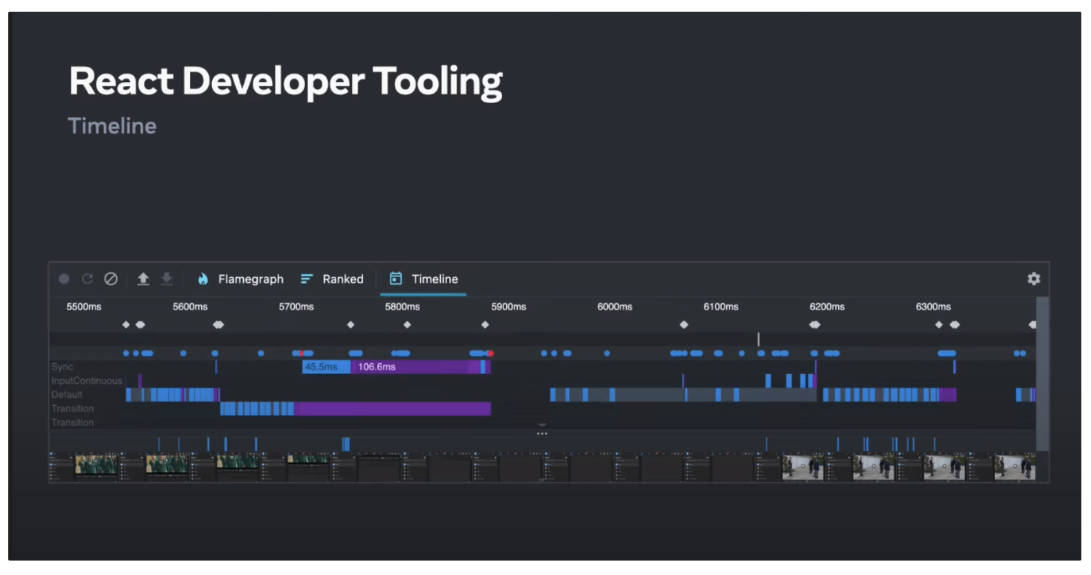 기존 브라우저의 performance Tool 과 달리 React Dev Tool 의 Timeline 은